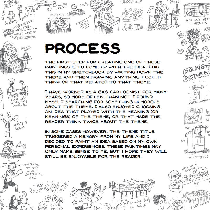 From 2008-2015 I painted one hundred watercolors, using the "100 Themes" challenge as my inspiration. This book collects all 100 watercolors, along with an introduction that explains the origin of the challenge and a 16 page appendix which explains the tools that I used to create these paintings and my process, from idea to finished painting.